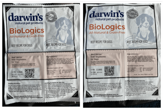 If you have any of the Darwin’s BioLogics pet food product listed above, stop feeding the product to your pets and throw it away in a secure container where other animals, including wildlife, cannot access it. Do not donate the food.