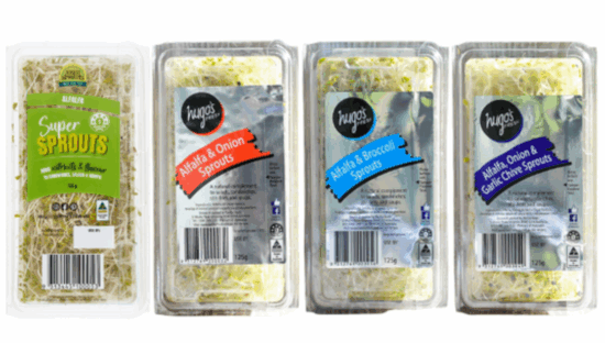 The company recalled the products while the investigation continues and further testing is undertaken. Hugo’s brand Alfalfa Onion & Garlic Sprouts; Alfalfa Radish Sprouts; Alfalfa & Onion Sprouts; Salad Sprouts; Alfalfa & Broccoli Sprouts; and Trio Sprouts Selection as well as Aussie Sprouts Alfalfa Sprouts are implicated.